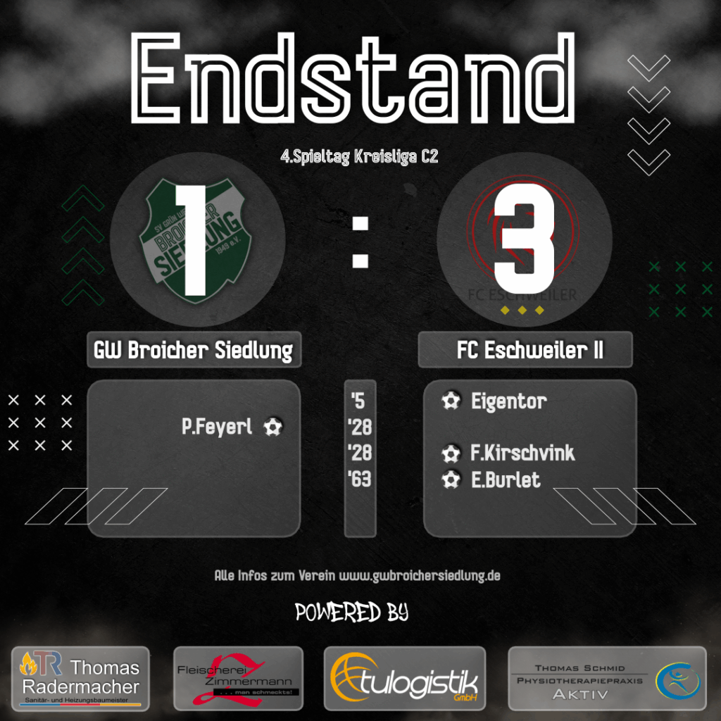 Am Sonntag mussten wir uns zuhause dem FC Eschweiler II mit 1:3 geschlagen geben.